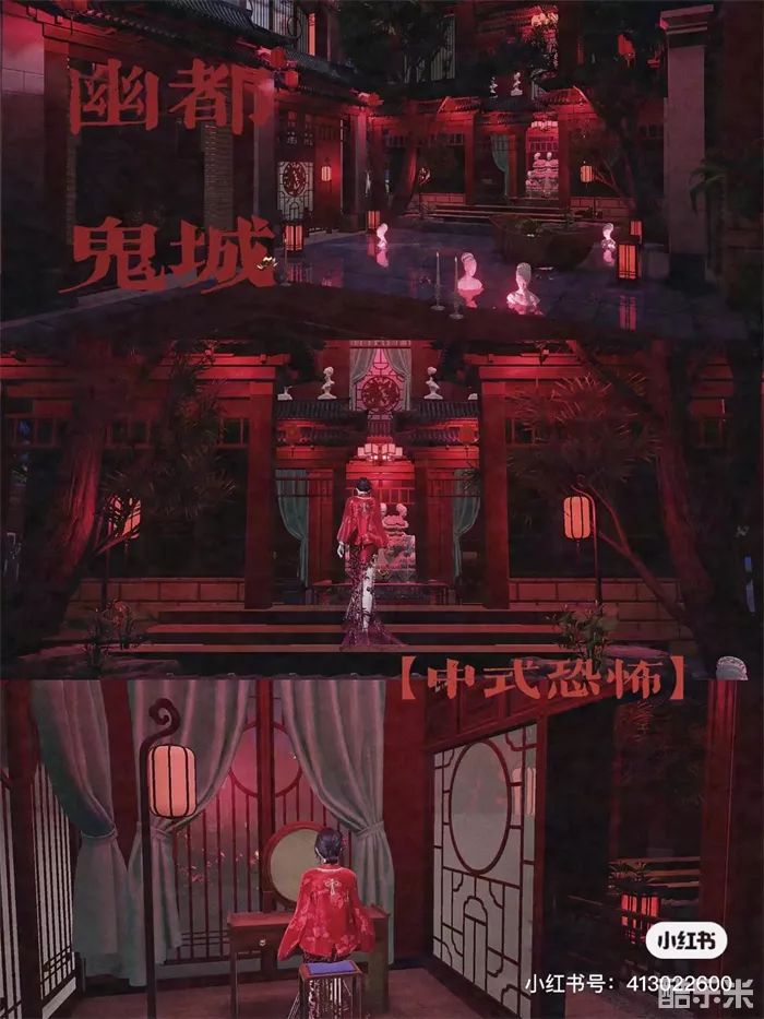 不少脑洞大开的玩家们利用游戏强大的服饰染色DIY功能,还有自由度极高的庄园系统,把中式恐怖氛围拿捏得明明白白。