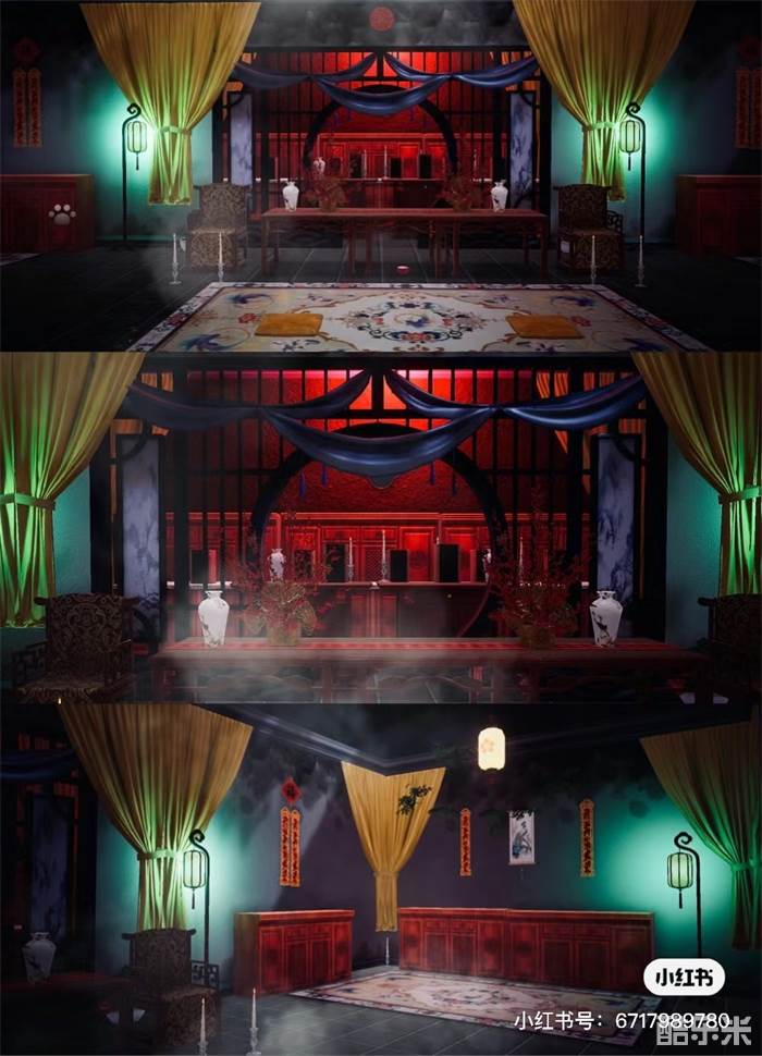 把家园打造成木质结构的古典建筑,再配上昏暗的红色蜡烛光,这中式恐怖的氛围感不就来了!
