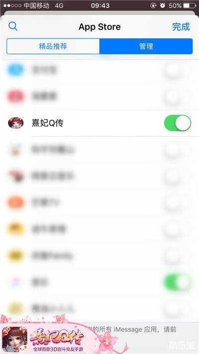 点击“+store”入口进入应用管理,在“管理”栏目中下拉找到“熹妃Q传”并打开权限,即可完成《熹妃Q传》专属贴纸的添加。这款贴纸中共有12个皇上的Q版表情包,一举一动萌趣可爱,仿佛可以看到平日里不苟言笑的大楚君王不为人知的另一面呢!