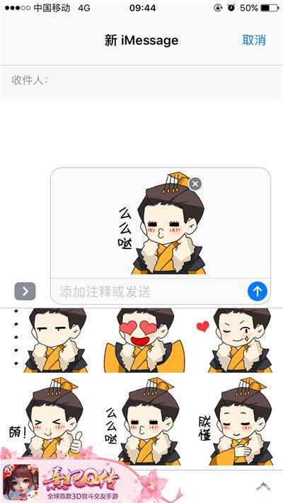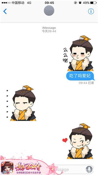 古时通信不发达,不论是娘娘们想要向皇上传情达意,还是皇上有重要旨意需要吩咐下去,都是一个极其冗长繁杂的过程。《熹妃Q传》深知宫中各位心中不易,于是贴心地在iMessage App Store上架了游戏专属贴纸,小主们再也不需要在宫门口苦苦等待龙辇到来,轻动手指便可以与心上的人儿共诉衷肠!
