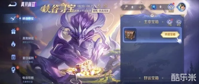 2、接着找到峡谷寻宝活动,就可以获得到今日好运口令,可以使用钥匙打开一个宝箱,打开之后我们就可以获得到1个主宰能量。