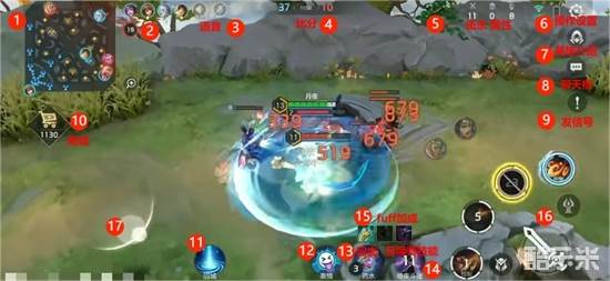 16. 右下角就是英雄技能和普攻按钮了,攻击用的;
