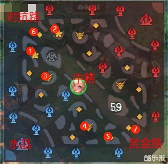 野区方面和王者总体来说是差不多的,都是斜对角对称的,但野怪上还是有一些差别的,我们来根据上图标点具体讲解一下。