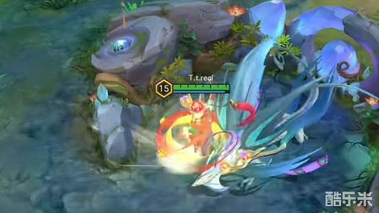 6和7.都是河道野怪,长的像小龙虾和灯笼鱼的结合体,过去一点有一个传送阵,这个跟王者不一样的是,只要你站在上面,就可以从对抗路传到发育路了,当然也可以从发育路传到对抗路,传送阵是有cd的,这个设计点倒是方便了玩家之间的支援。
