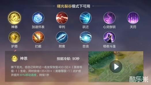 曙光荣耀现在共有11种召唤师技能,暗夜斗篷和王者的净化比较类似,跃迁和闪现比较类似,也是之前用的最多的两种技能,审判和心灵枷锁的效果主要是限制敌方,玩家还是要根据英雄和个人爱好来选择。
