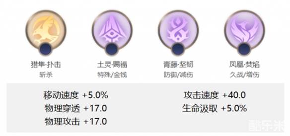 猎隼·扑击、土灵·赐福、青藤·坚韧、凤凰·焚焰