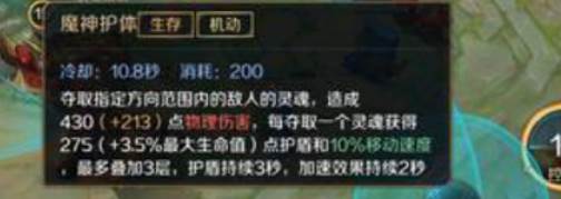 1技能有两段效果,第一个效果可以对路径上的敌人造成减速,后续会解锁第二个效果,先前方进行横扫击飞敌人,技能使用期间免疫控制,2技能会向周围的敌人进行吸血,吸血的时候会提供自身一个护盾值,人越多护盾值越高,该技能是保证牛魔王持续战场的关键。