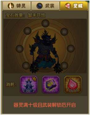 器灵觉醒功能需要器灵十级后才会开放,本次优先开放了大娃、二娃、三娃的器灵觉醒。器灵觉醒需要消耗对应器灵的法宝碎片、炼器符与对应娃娃的潜能宝石,觉醒后将激活宝石属性。