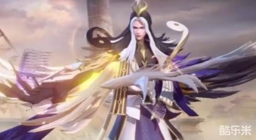 伏羲的经典皮肤有紫色与白色相间的羽毛,头顶还有金色顶戴,整个服装给人感觉就很像鸟类的化身,肩膀两侧还有黑色与黄色相间,有点像是道家两仪八卦的图案。还有黑色白色两种类似鱼一样的生物在周身缠绕。