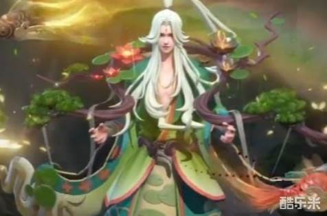 锦鲤仙缘,这款皮肤看上去则显得轻盈许多了,白色长发梳成了2道,更是沿着肩膀前胸垂下,加上墨绿、青绿、灰白色调的服装,给人一种鹤骨仙风的感觉。