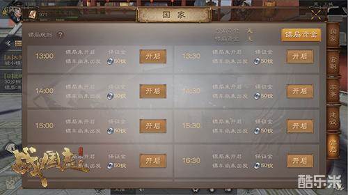 另外,作为帮派管理者,尤其是王帮,可以在相应时段开启镖局,对本国镖车进行保护,同时赚取运镖玩家的保金。在游戏中,押镖的玩家可以向镖局投保,花费少量的保险费,以备在军需镖车被砸时,获取镖局对损失银两的全额赔付,从而降低镖车被砸的风险。因此对开设镖局的帮派来说,更应召集成员对投保玩家的镖车进行保护,防止镖车被砸,减少赔付损失。