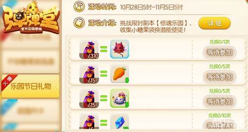 而《弹弹堂手游》另一重磅活动“万圣节大作战”将于11月3日5点结束,完成指定日常任务,可以获得大量消耗资源和“南瓜灯糖果”(现在重头去做也是来得及哟)。而“南瓜灯糖果”可以在“不给糖就捣蛋”兑换活动中换取各种幸运礼包,顺带一提,兑换活动持续到11月4日5点结束。