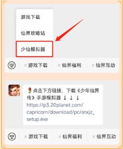 或者关注官方公众号的菜单栏【游戏下载-少仙模拟器】即可进行下载了。