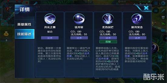 露娜第一次普通攻击会对目标进行近距离的冲锋,第三次普通攻击则会造成范围伤害并标记范围内敌人。这个技能关键在于普攻的第三次可以标记敌人,为无限大招做准备。在近身时可以先用普攻追击一次,后续敌方身上有标记的情况下大招跟上。