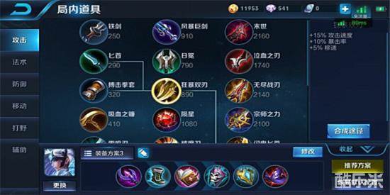 当然也可以选择带惩击,带惩击的话露娜就需要选择打野路线。出装上将时之预言替换成符文大剑。