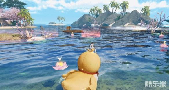 少侠可前往南海海面上的玩法摊位,与冲浪板架交互,交互成功后会站上冲浪板,此时若有其他少侠在周围,可以牵引站上冲浪板的少侠进入冲浪状态开始玩法,游玩时控制方向触碰海面上漂浮的莲花积分道具来获得积分,期间注意躲避礁石,获得既定积分后玩法成功。若想单人游玩也可以直接找寻附近的小黄鸭,牵引小黄鸭来完成玩法。
