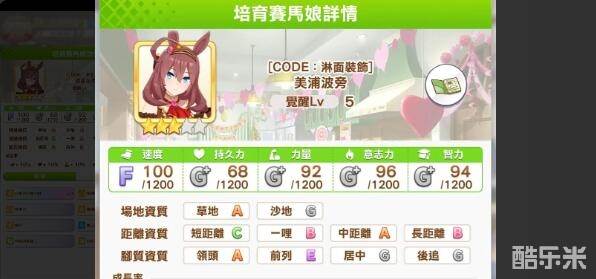 缺点就是不能用自己的支援卡,现在拿不到先手必胜,靠地固+先锋+金出闸还能勉强不亏,日服出金地固又是波旁卡,情波拿不到金地固,加上彩技质量一般,就逐渐被其他马代替了,保质期一年,之后虽然强度略降但仍然能用。