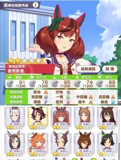 黄金船是游戏里比较少的后追马,中长距离资质都达到了A,她自身有20%的持久力成长率,很容易就能达到s级的持久力,所以毫不犹豫直接培育成跑长距离的赛马娘。不过黄金船的培育剧本比较难玩,在培育过程中会突发任性,限制训练的项目。