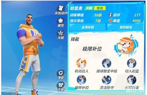 胡里奥是一名内线得分能力突出,尤其擅长内线的身体对抗以及扣篮的球员,在防守端配合技能的快速补位,也能有效阻碍对手的得分。弹跳能力出众,盖帽防守投射能力强,同时抢篮板能力也不错,可以在抢板同时将其转化为自己的得分,是优秀的内线得分手。