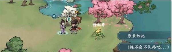 整个事件流程还是较为简单的,但玩家们获得藏宝图之后,会有一条虚线进行给予玩家们指引,到最终的目的地,玩家们只需要跟着虚线前往即可。我们可以沿着虚线来到目的地,具体在莲花池子旁下河边区域就可以寻找到这个宝箱了。