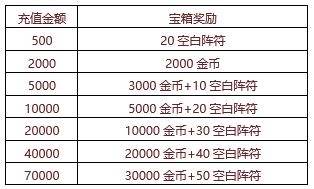 【活动内容】金币奖励满额返还,额外赠送大量空白阵符,天地水火,风雷山泽,奇门阵符,尽收囊中,一切尽在本期月末超值大放送。