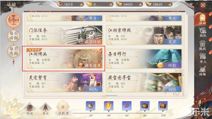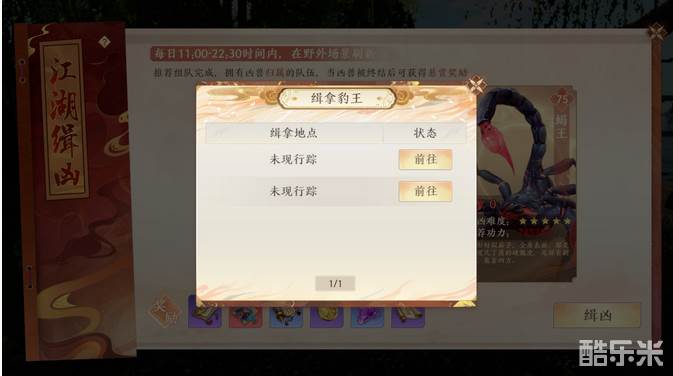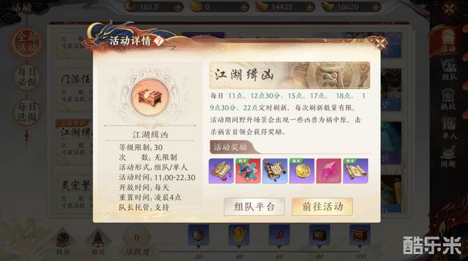同时也可以在【活动】-【江湖缉凶】-【前往活动】参与活动。