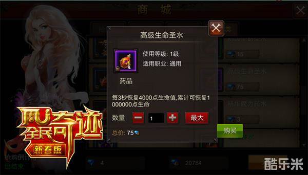 前期红药,后期圣水;双管齐下,复活再战!有了持久的续航能力,或许,你也可以成为奇迹大陆这片炽热土地上真正的野战之王!儿随着《全民奇迹MU》版本不断更迭,等级上限不断提升,想必也会有更好的回血物品在后面等着我们!
