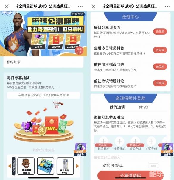 花式耍帅潮酷出场,大神狂欢加码共庆公测!前往大神APP《全明星街球派对》圈子,进入【公测庆典】活动页完成每日任务即有机会赢取188元球星基金、月卡基金60元、明星球衣基金、群星汇集券等丰厚游戏福利!街篮的热血传奇由你书写,速来加入狂欢赢取公测豪礼吧!