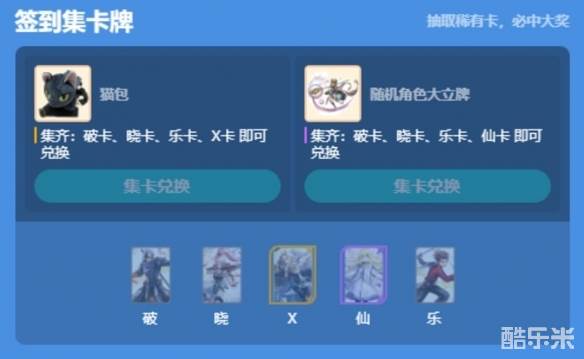 1)在活动页面内进行每日签到,可额外随机获取一张卡片,且每日仅可获得一张。通过收集齐不同的卡片,可兑换对应的周边奖励。