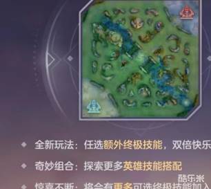 游戏中地图方面并没有太大创新,依然是双方进行对战,最好玩地方就在于可以自由进行技能组合搭配,不再有英雄方面限制。所出现的都是各个角色大招,当然目前并没有全部推出,后续还有待进一步强化更新。但是目前现有一些技能已经可以组合出多种套路。