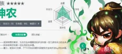神农是迷你游戏中人族的辅助角色,该职业算是游戏中优势最明显的治疗类角色。在神农等级不高时,他的输出力其实并不高,但胜在他的血条厚,其强大的治疗能力还可以快速为自己和队友恢复生命值。他有一个技能是复活,也就是说当场上有阵亡的角色时,他能够用技能将其救起来,可以说光是他的复活技能就足以超越游戏中的其他治疗角色了。