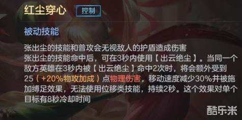 被动使得无论是技能或者普攻都能无视对方护盾,当技能命中之后,三秒钟内能使用五技能。如果同一个敌方英雄在三秒内被该效果命中两次,将受到额外伤害以及移动速度减少,并使其无法使用位移类技能。该效果对单个目标有8秒钟冷却时间,如果能熟练运用好被动技能这一特点,将会使对方移动性大大降低,很多依靠移动和位移来秀操作的角色将会直接丧失优势。
