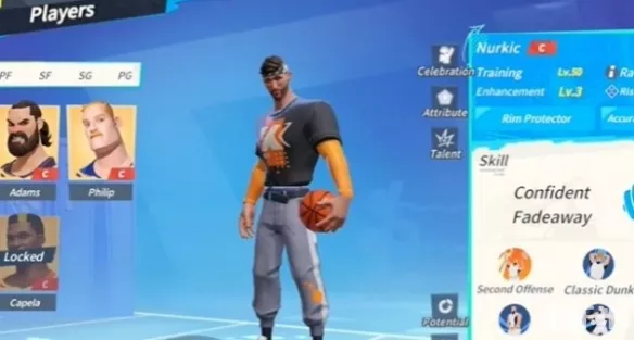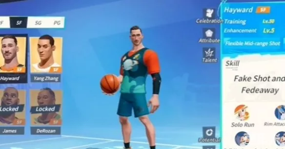 2、他的技能是虚晃转身后仰,可以突破敌方防线,上篮得分。