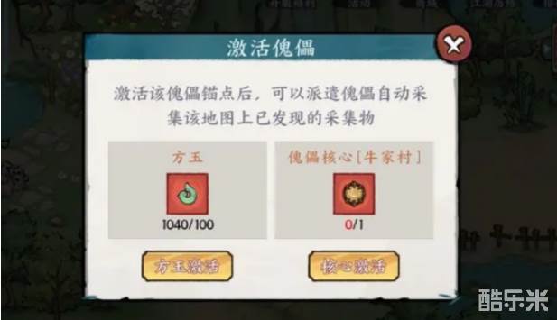 2、该道具可用来激活牛家村一键采集傀儡的功能,采集全部可采物。