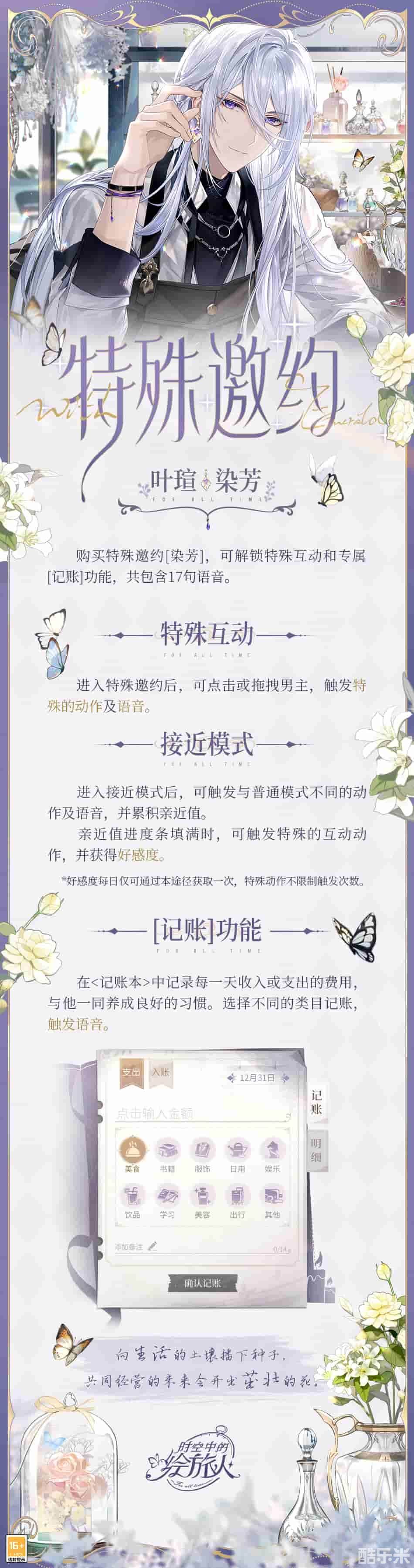 8月31日更新后,叶瑄特殊邀约[染芳]上线,获取后可在[出行]开启与叶瑄的特殊邀约。若设置为“最爱”,点击出行将优先进入特殊邀约。