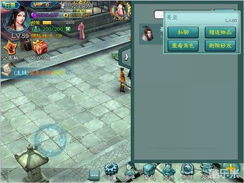 想进一步了解你的兄弟或心仪的MM,你完全不必向别人打听,只需要在好友列表中点击好友的名字即可,届时将出现操作选项,点选“查看角色”按钮,便会弹出该好友的资料。其中不仅包括好友的名称、等级、装备、属性、修炼,甚至连好友所拥有的侠客等级、装备资料也已一览无遗。与此同时,“好友系统”中的“赠送物品”功能可直接实现玩家间的互相交易,左键点击好友名单中的好友,出现操作选项,点选“赠送物品”按钮就可以送出心意了。