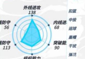 塞斯库里的进攻能力很强,但是防守能力很弱,擅长投篮,在中远距离能发挥优势,爆发技能稳定投篮得分。