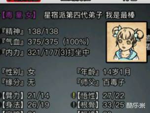 拜师界面选择江湖邪派——星宿派。门派内功化功大法有负神要求