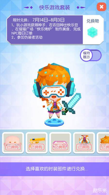 换装界面有个商店,里面出售精美的猫币时装。周末完成海滩的水果贸易、日常任务可以获得猫币哦。