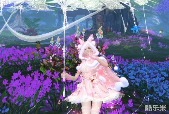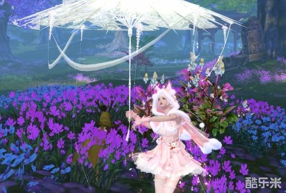 少女头戴【虎步踏春】,手中【蝶影千萝】戒指引来翩翩蝴蝶,只见她双手相握合十立于各色花朵中,身后洁白无瑕的羽翼肆意扑闪,绚丽的流光伴随点点星莹蔓延开来。她身着【暖絮浮岚】甜美可爱,红粉丝带在腰间盈盈一系,将少女的窈窕身段显露无疑。裙摆处粉红水晶散发晶莹光芒,竟让周遭鲜花都为之失色!