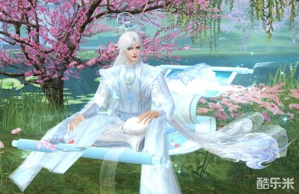 身后桃花繁密,宛若红云,少侠微卷的银发随意地披散于胸前,长长的披风如水波般垂至地面,和煦的日光映照在衣袂上,似有光华在其中流转。他手握【云狐念】横立于桃花林中,一副悠闲赏花的模样,让人忍不住为之心动!