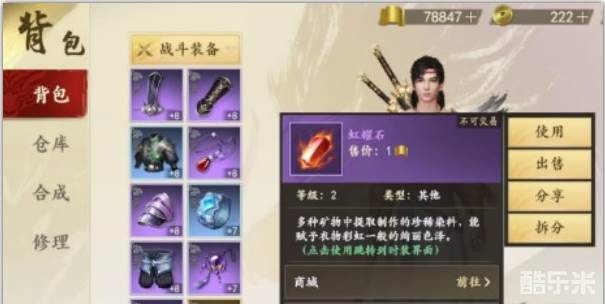 1、因为在游戏中大家是可以自己制作衣服的,而做衣服除了在款式上面可以选择之外,还可以为已经设计好的衣服进行染色,染色需要用到的道具就是这个虹耀石,一般大家想要什么颜色需要提前看看自己解锁了什么颜色,因为虹耀石并不是单一的固定颜色。