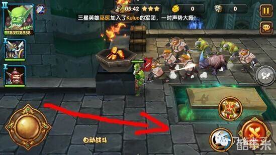 2、关闭自动反击。有没有试过看见通往下一幅图的光圈想跑进去,拼命点拼命点,英雄却被怪打了一下又跑回去呢。这里只要关闭自动反击英雄就再也不会回头了。