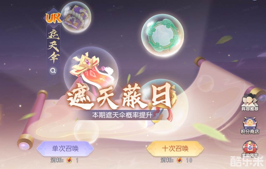 新增法宝遮天伞, 封神榜法宝遮天伞限时概率提升卡池。