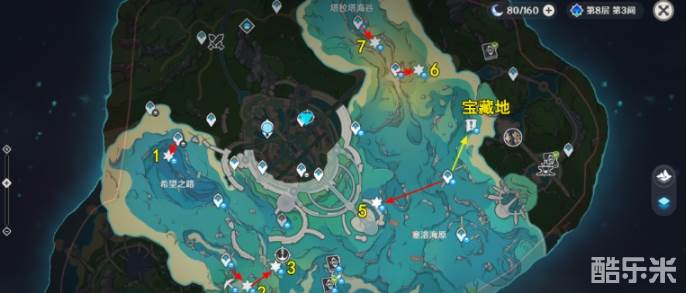 1、玩家首先前往枫丹廷,然后前往如下图标记位置7。