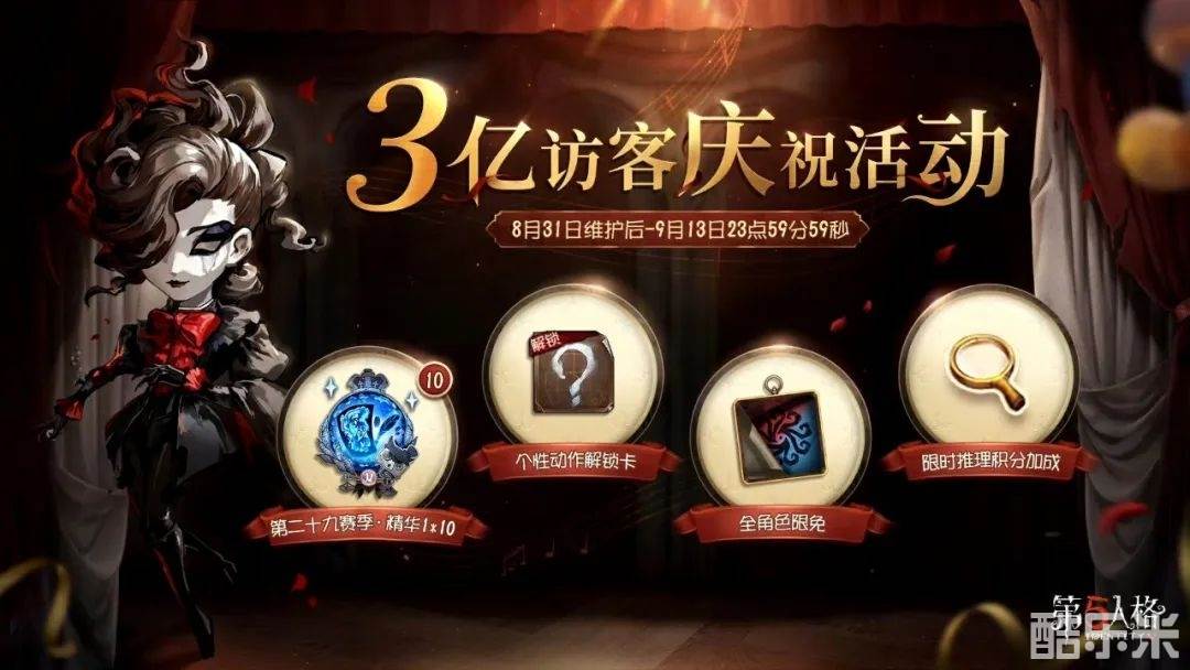 ——欧利蒂丝庄园现已迎来3亿访客!为了感谢诸位访客的到来,庆祝活动将于8月31日维护后开启。活动期间登录游戏的访客们将获得【第二十九赛季·精华1*10】,完成任务还可获得个性动作解锁卡、友情点等奖励;