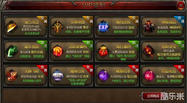 首先我们看看至尊VIP的福利,界面一打开,满屏的福利亮瞎了我的钛合金狗眼!不论是提升属性还是各种福利一应俱全,不充个至尊VIP怎么能痛快?多搬几块砖的事而已,GO GO GO!