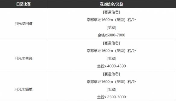 1、建议在日常比赛的“月光奖”中获得大量金钱,难度越高,将获得的收益越多,因此在可以取胜的前提下挑战最高难度,每天最多可以挑战3次日常比赛,因此请尽可能抽空玩一玩。