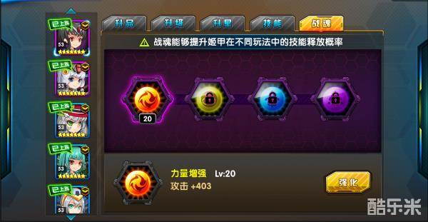 每一位战姬都拥有4中不同的战魂从而进一步提升战姬的攻击,防御,技能,辅助,生存等各个方面的属性。