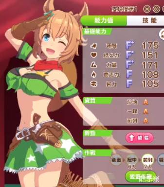 觉醒技能:英里支配者,传说稀有度技能,在临近比赛中盘处于前方词后容易拉开差距,速度技能值0.35。